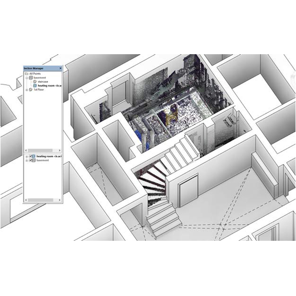 从点云创建截面和切片,并自动提取线模型和正像,以创建平面图、立面图和外观图。无论支持点云与否,都可将 CAD 结果导出到首选的 CAD 系统。