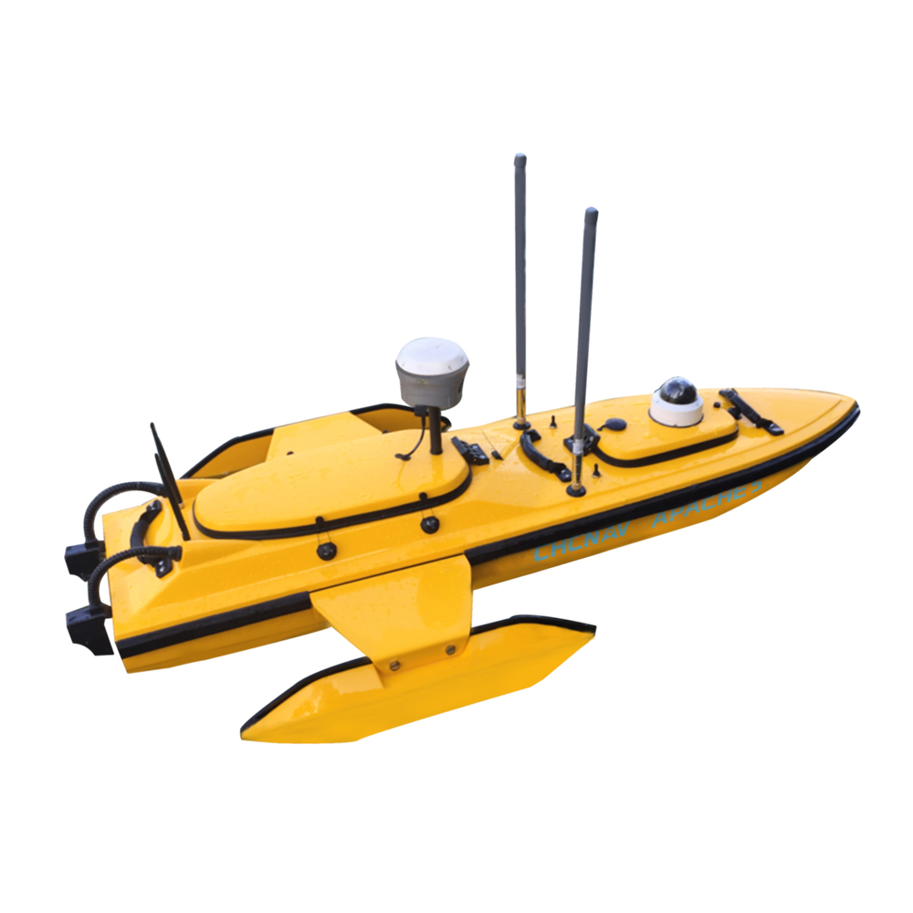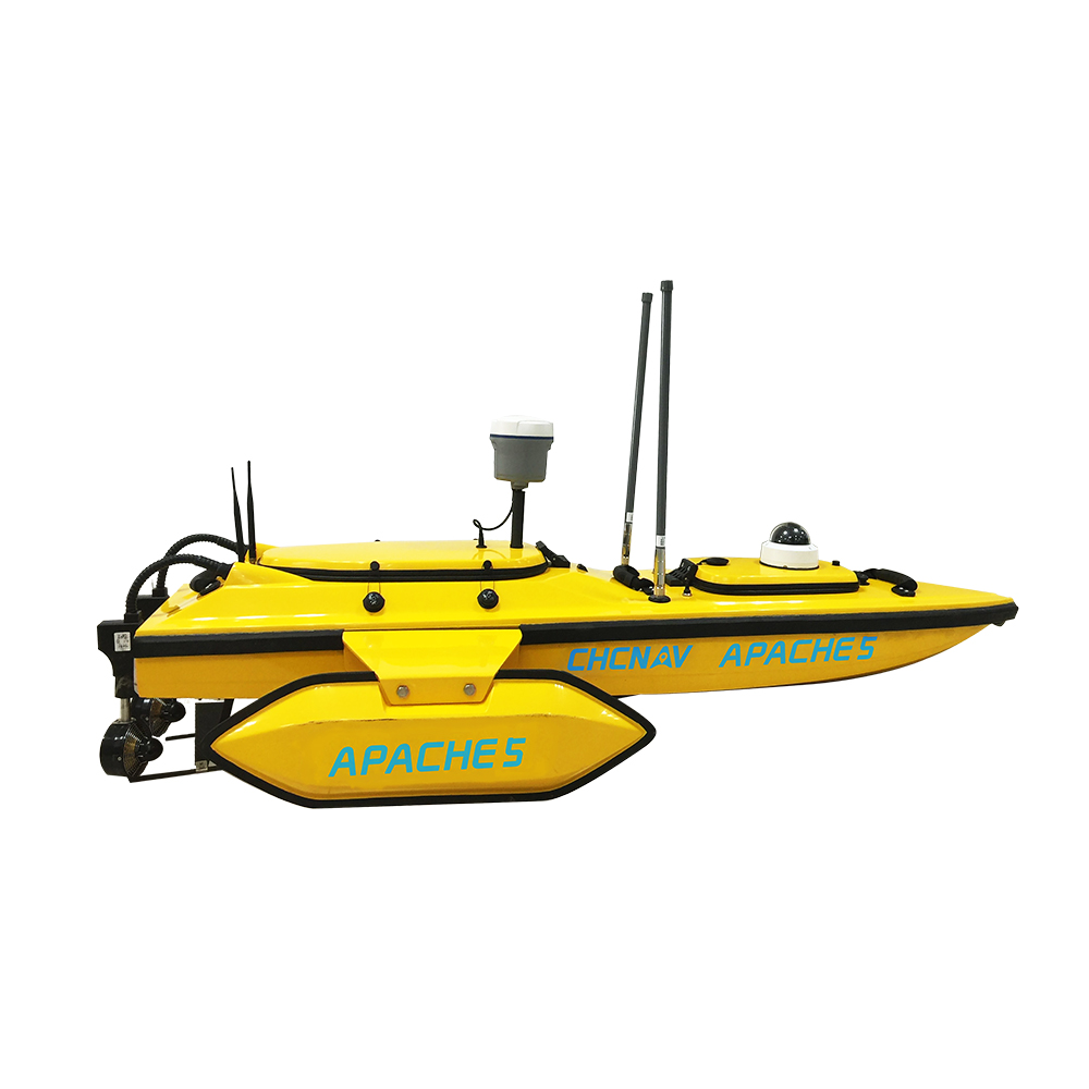 华微5号无人船是一款高稳定性、强搭载兼容性的无人测量船。可拆卸、可调节两侧平衡翼使船体适应多种风浪环境水域,5m/s最大动力输出具有较强的顶流性能,顺逆流时自动调节转速以保证正常航速。结合RTK+D230分体式测深仪可以实现免验潮水下地形测量。