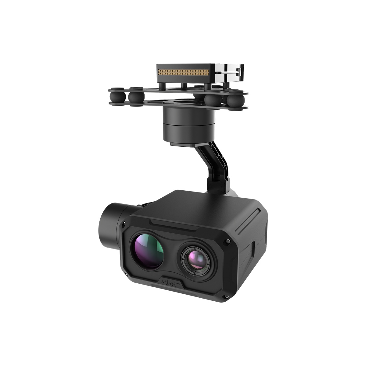 金眼彪ZT40双光云台为研发生产的挂载类产品,集红外热成像机芯与高清变焦机芯于一体,配备全新的云台接口,可适配我司多个型号的飞行平台。集成先进的云台控制系统,用户可使用MMC自主研发的地面站控制云台或切换显示图像。